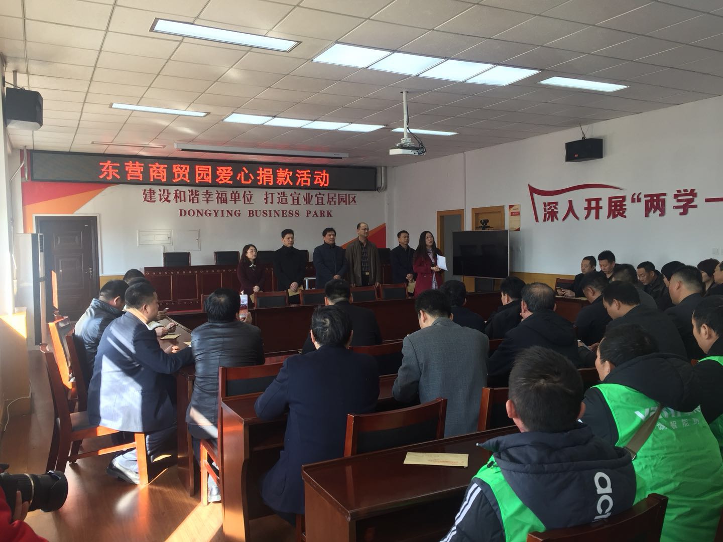 2018年3月9日上午,東營區商貿園發起了為商貿園患病職工捐款的活動,山東勝潔物業管理有限公司總經理羅軍三帶員工參加了此次活動