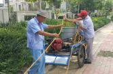 悅來山水居項目處工作人員清洗垃圾桶,使小區(qū)內(nèi)衛(wèi)生更加整潔金盾項目處工作人員對小區(qū)內(nèi)綠化進行修剪 保潔部邊防檢查站項目處對