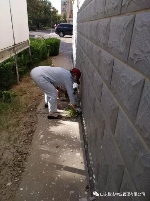 我們的保潔員們清掃、拖洗人行道路面,清理散水坡的雜草,讓小區更加的整潔明亮,讓大家在干凈的環境中歡渡國慶。