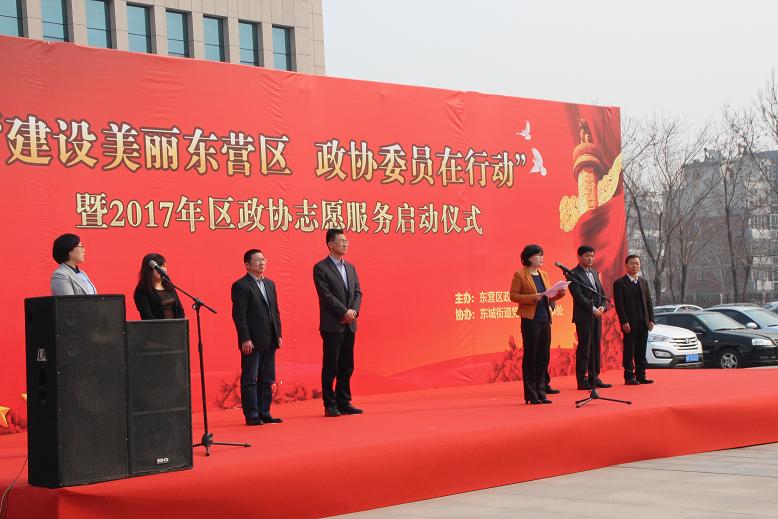 3月18日上午,“建設美麗東營區,政協委員在行動”暨2017年東營區政協志愿服務活動啟動儀式舉行。區委副書記張成仙出席儀式并講話,區政協主席楊繼紅主持儀式活動,區委常委、宣傳部部長、東城街道黨工委書記宋士棟等出席儀式。