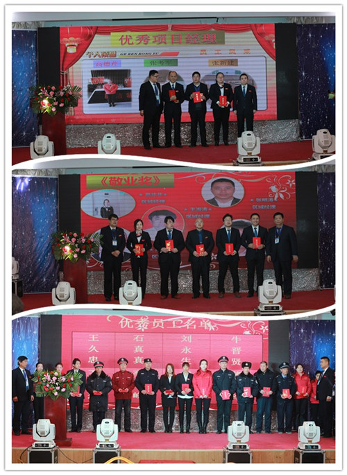 隨后,頒發2016年度優秀員工獎,表彰2016年度在各崗位中做出突出貢獻的員工。公司特為優秀管理處、優秀員工及優秀項目經理頒發了40余個獎項,帶著榮譽和榮耀,勝潔家人們在感恩中接過公司的沉甸甸認可,一年的不辭勞苦和辛勤工作,終于換得了夢想的今日成就,未來,他們一定會更加努力,步步攀登高峰。