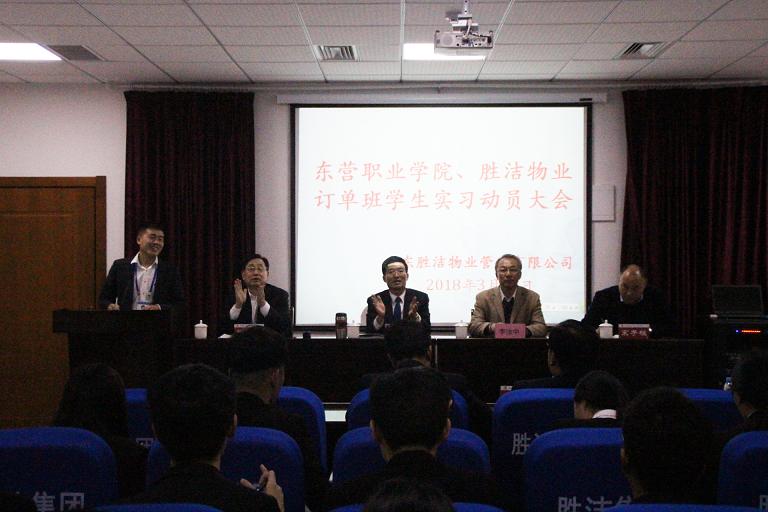 2018年3月12日下午,在山東勝潔物業(yè)管理有限公司培訓室召開了“東營職業(yè)學院、勝潔物業(yè)訂單班實習啟動大會”,東營職業(yè)學院領(lǐng)導李汝中、勝潔班班主任宋子柱、山東勝潔物業(yè)管理有限公司董事長兼總經(jīng)理羅軍三、副總經(jīng)理張積明及其他領(lǐng)導參加了會議,行政綜合部部長徐本琪參加并主持了會議。