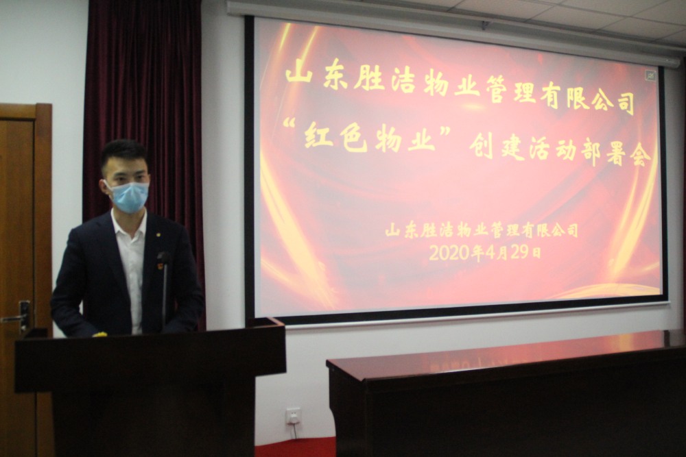 為積極響應東營市“紅色物業”工作總體要求,充分發揮物業企業黨組織和廣大黨員的積極作用,以解決業主最關切的問題為出發點,4月29日上午,山東勝潔物業管理有限公司在公司總部會議室召開“紅色物業”創建活動部署會議,區域經理、項目經理、公司副總以上管理人員以及辦公室人員參加會議。