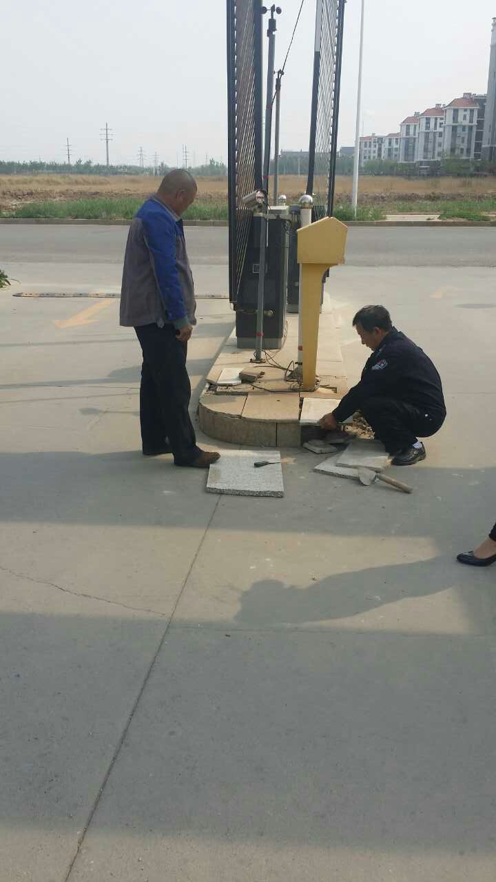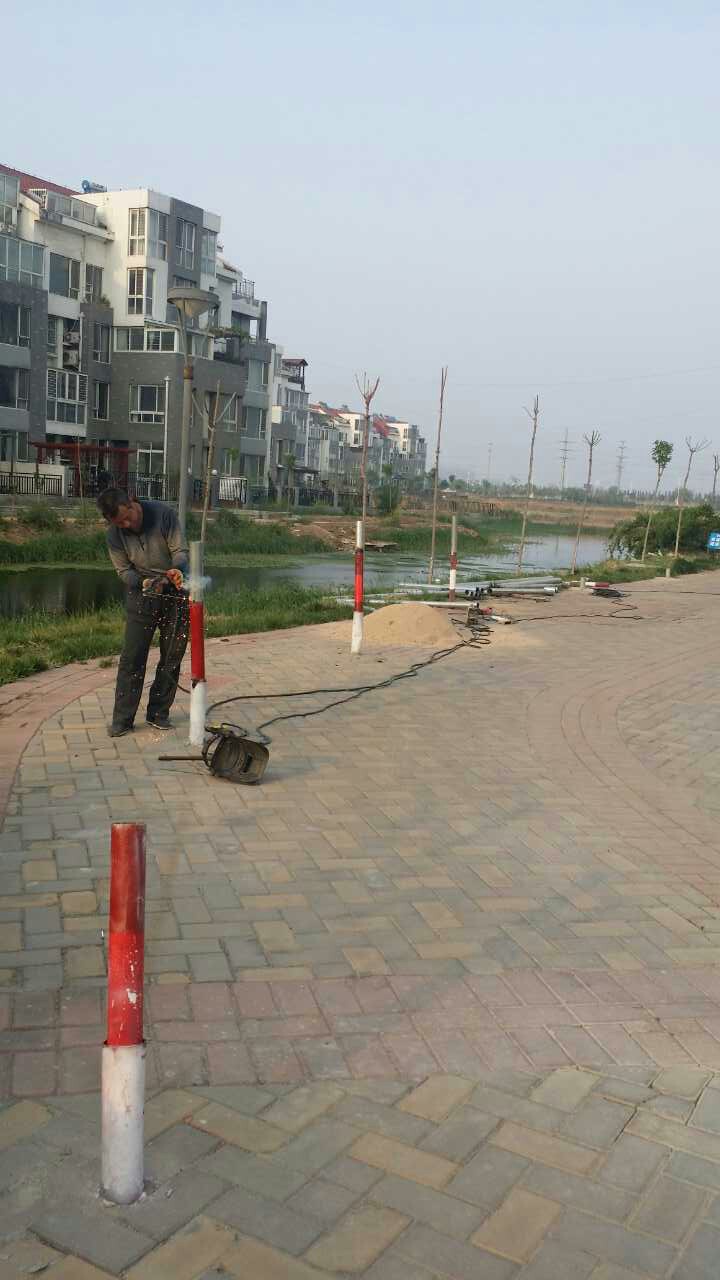 協調社區師傅為小區修復湖邊護欄,工程師傅正在緊張忙碌著