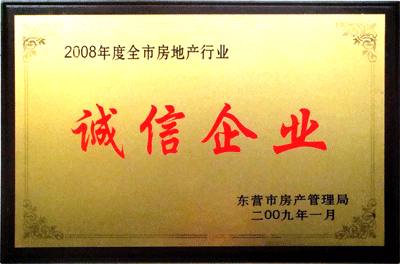 公司于2009年1月榮獲市級房地產行業2008年度“誠信企業”稱號