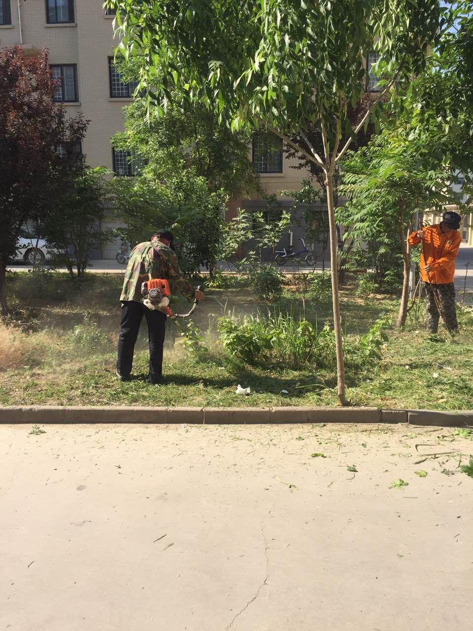 鴻洲名仕小區(qū)的綠化員工們正在緊鑼密鼓的清理著綠化帶中的雜草,保持綠化帶的整潔干凈。