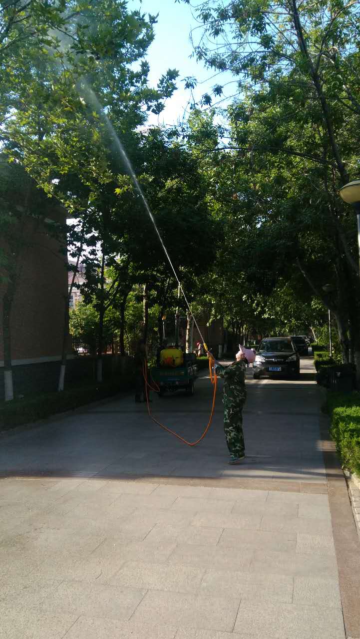 夏季來(lái)臨,蚊蟲(chóng)增多,一些樹(shù)木蟲(chóng)害也漸漸出現(xiàn),新區(qū)住宅區(qū)的綠化人員們?cè)跒樾^(qū)內(nèi)的樹(shù)木打藥,保證樹(shù)木的健康生長(zhǎng)。 小區(qū)的綠化植物能夠凈化空氣減少塵埃吸收噪音,改善小氣候、遮陽(yáng)降溫、降低風(fēng)速,而在炎夏靜風(fēng)時(shí),由于溫差而促進(jìn)空氣交換;另一方面,多姿多彩的花草樹(shù)木,豐富多樣層次分明的植物布置有利于美化小區(qū)的面貌。 在良好的綠化環(huán)境下,居民有良好的心情參加戶外活動(dòng)和進(jìn)行社會(huì)交往活動(dòng),提高人們身心健康,有利于創(chuàng)建和諧的社區(qū)環(huán)境。