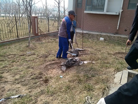 2015年3月20號,金融小區、執法局中隊項目處和社區一同清理整頓小區綠化帶毀綠種菜現象。