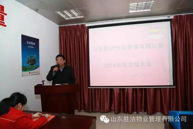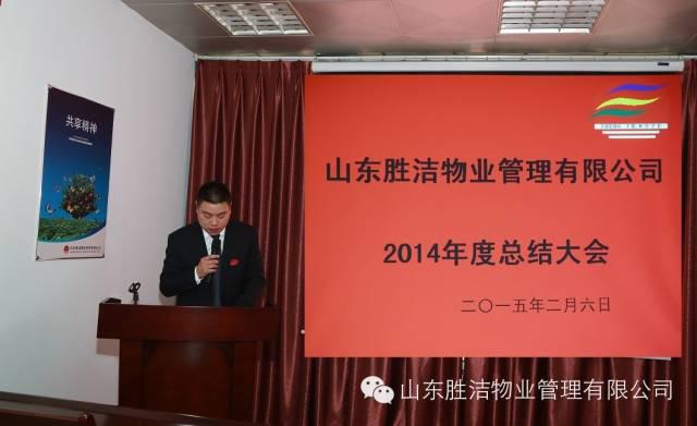 2015年2月6號,山東勝潔物業管理有限公司召開公司年末會。在演唱完公司歌曲《咱們勝潔人》后,大會以劉洪亮總監發表講話開始。劉總監宣布了大區域經理的名單。