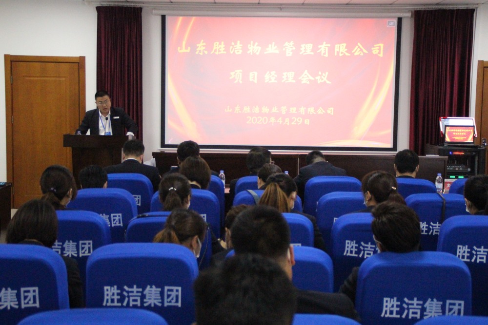 2020年4月29日,山東勝潔物業管理有限公司在公司總部大會議室召開2020年第1季度項目經理會議,公司領導、區域經理、項目經理及辦公室全體員工參加了會議。本次會議由公司行政副總徐本琪主持。
