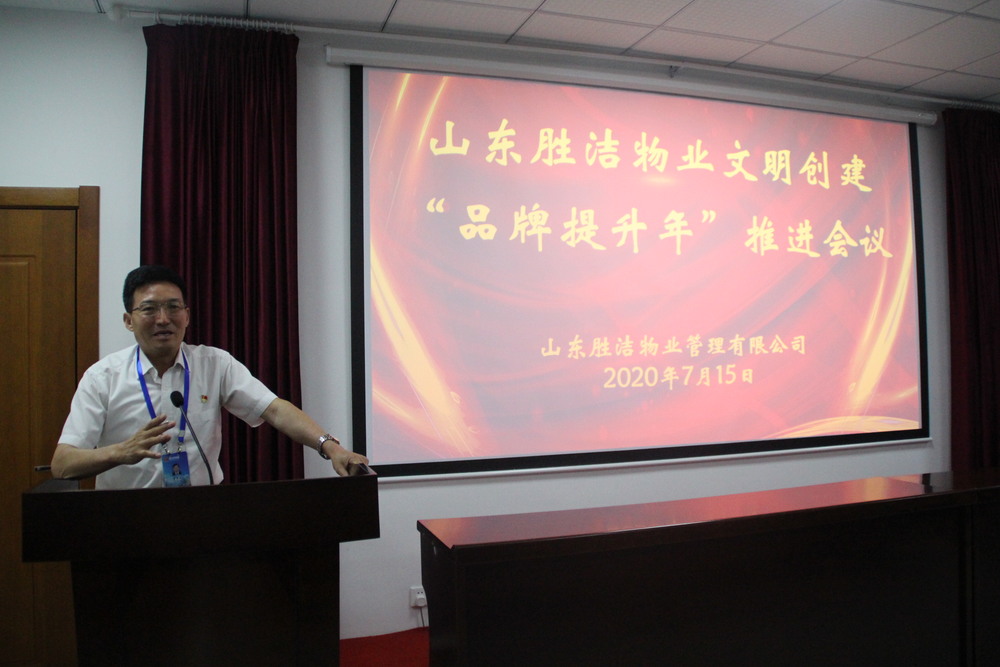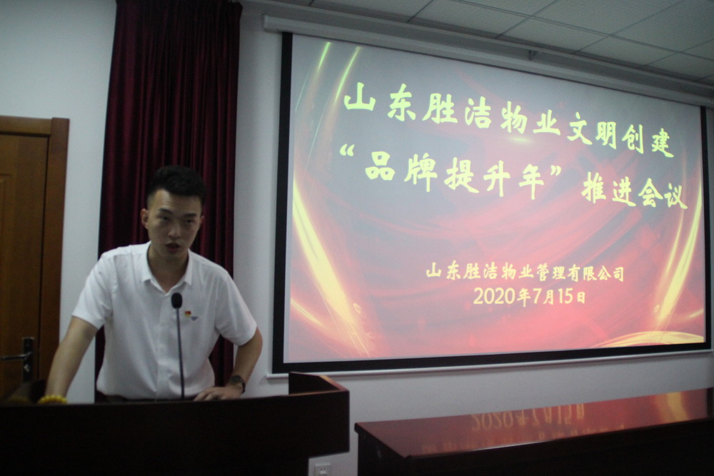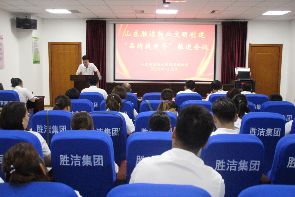 2020年7月15日,山東勝潔物業管理有限公司召開物業服務行業文明創建“品牌提升年”推進會議,公司領導、區域經理、項目經理及總部辦公室全體員工參加了會議。